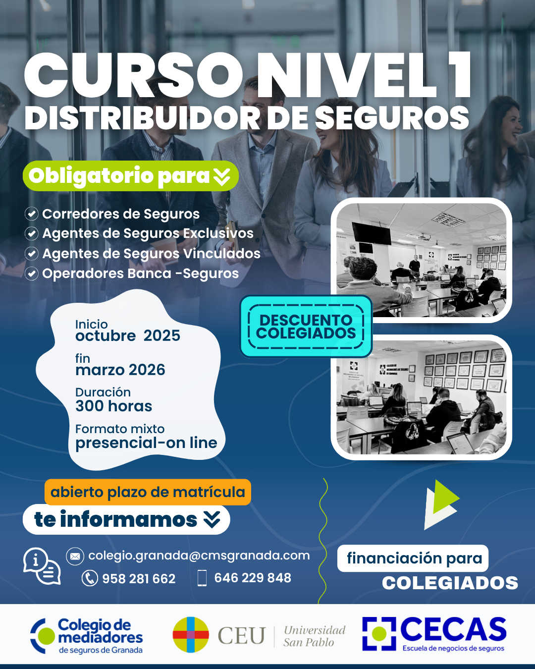 Abierto el plazo de matriculación del Curso Superior de Seguros 2025-2026 que organizamos en el Colegio Mediadores de Seguros de Granada: